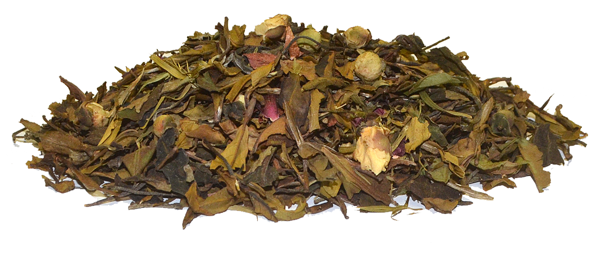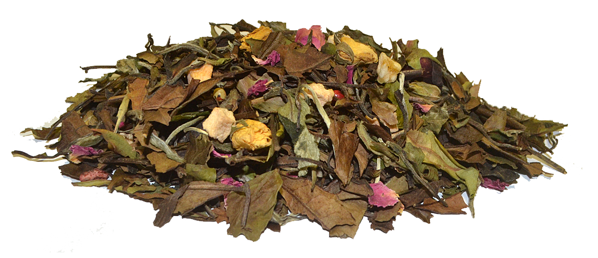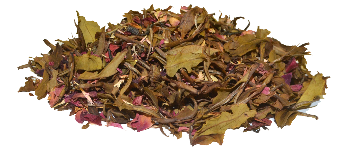 Pai Mu Tan teetä, vadelmaa, omenaa, ruusun terälehteä, keltaisen